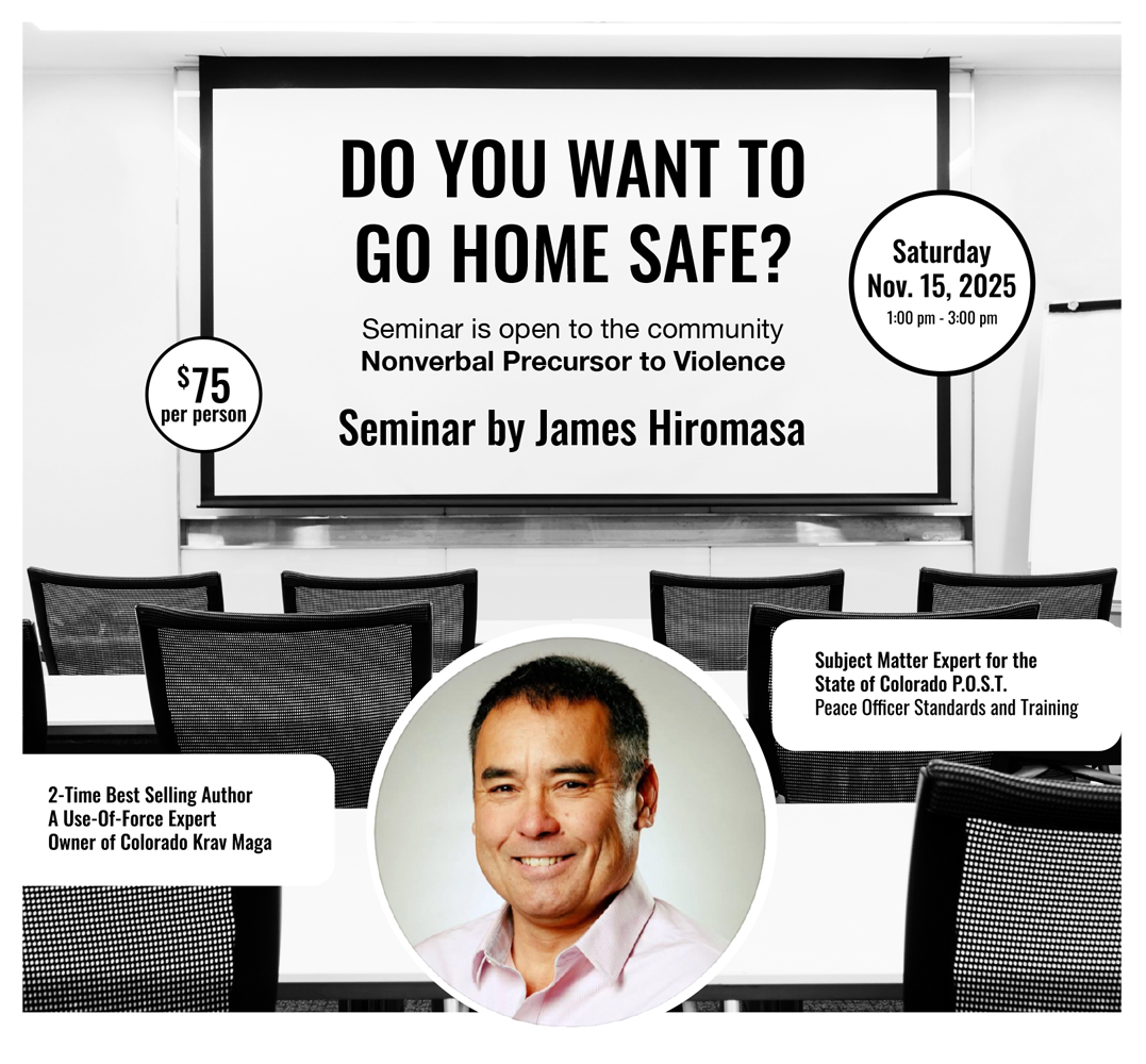 Nonverbal Precursor to Violence. 1:00 pm -3:00 pm. $75 per person. Unlock the ability to spot danger before it strikes! This seminar reveals the early warning signs that someone may be gearing up to attack, flee, or even lie to you. You’ll learn how stress hormones like cortisol and adrenaline trigger the body’s uncontrollable “fight or flight” responses—and how those signals show up in ways you can see if you know what to look for. With powerful insights, practical tips, and plenty of real video examples, you’ll gain a new skillset that gives you an edge in de-escalation, avoidance, and defense. Don’t miss the chance to develop your own real-life superpower!